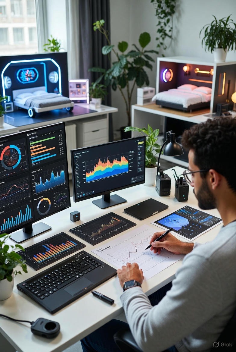 Creating a Data Synthesis: Let’s say your phone’s screen time report shows 45 minutes of social media use before bed. Your sound app records frequent tossing and turning in the first half of the night. Your basic fitness tracker shows a long sleep latency (time to fall asleep) and low sleep efficiency. Combined with your journal noting anxiety, this paints a clear picture: pre-sleep stimulation is triggering anxiety and physical restlessness, delaying sleep onset and reducing sleep quality. The fix becomes targeted: implement a strict 60-minute digital curfew. The mission behind creating tools to simplify this synthesis is a core part of our story and vision for integrated health tracking.